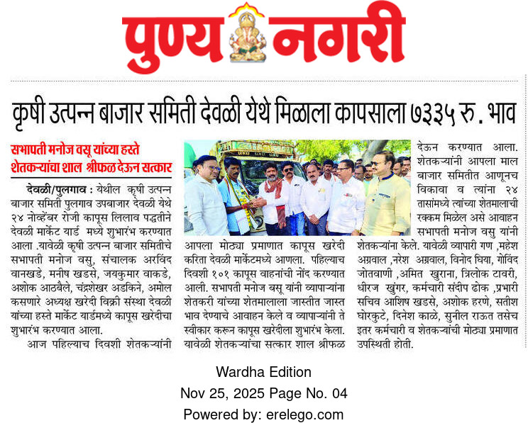 कापसाला ७३३५ प्रतीक्विंटल भाव